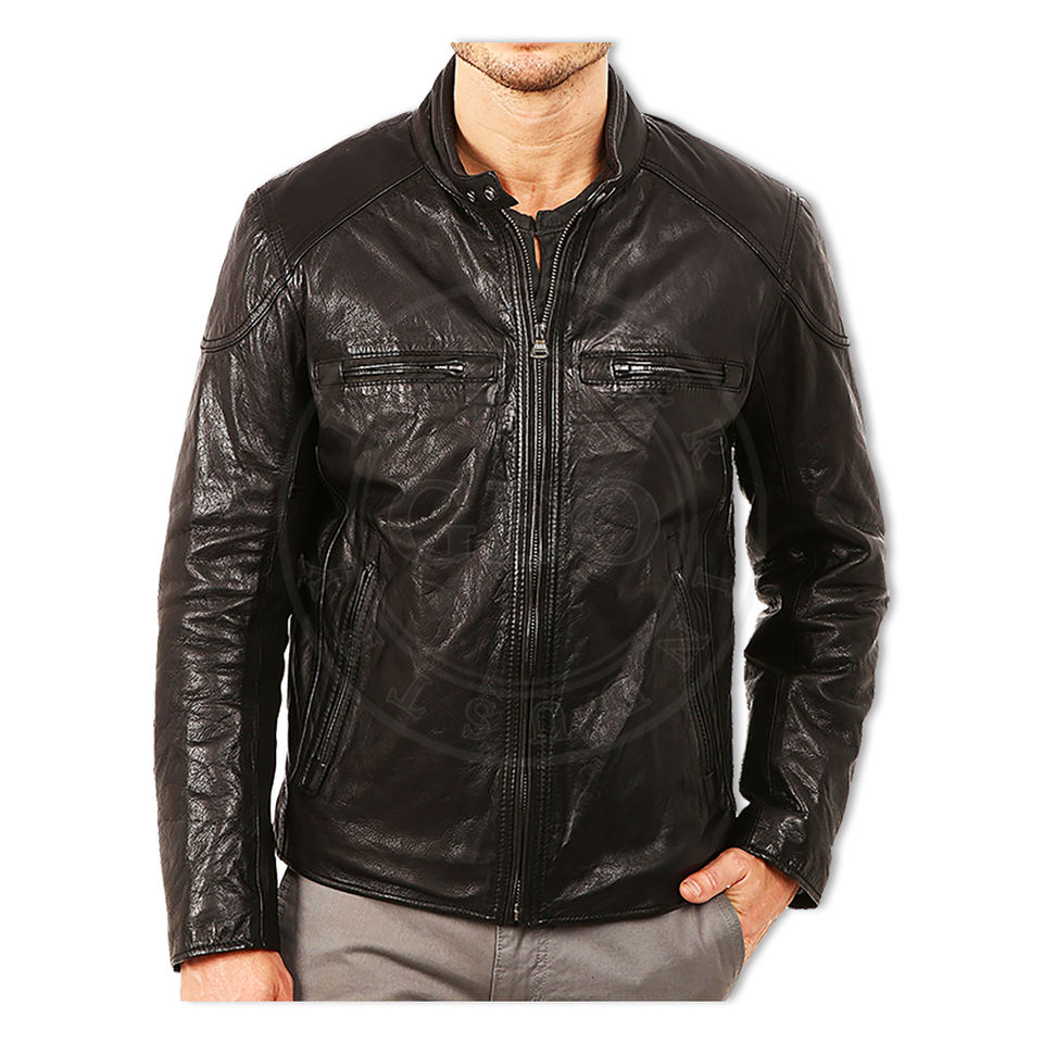 เสื้อแจ็คเก็ตหนังแท้สำหรับผู้ชายสไตล์นักขี่จักรยานและเครื่องบินทิ้งระเบิด