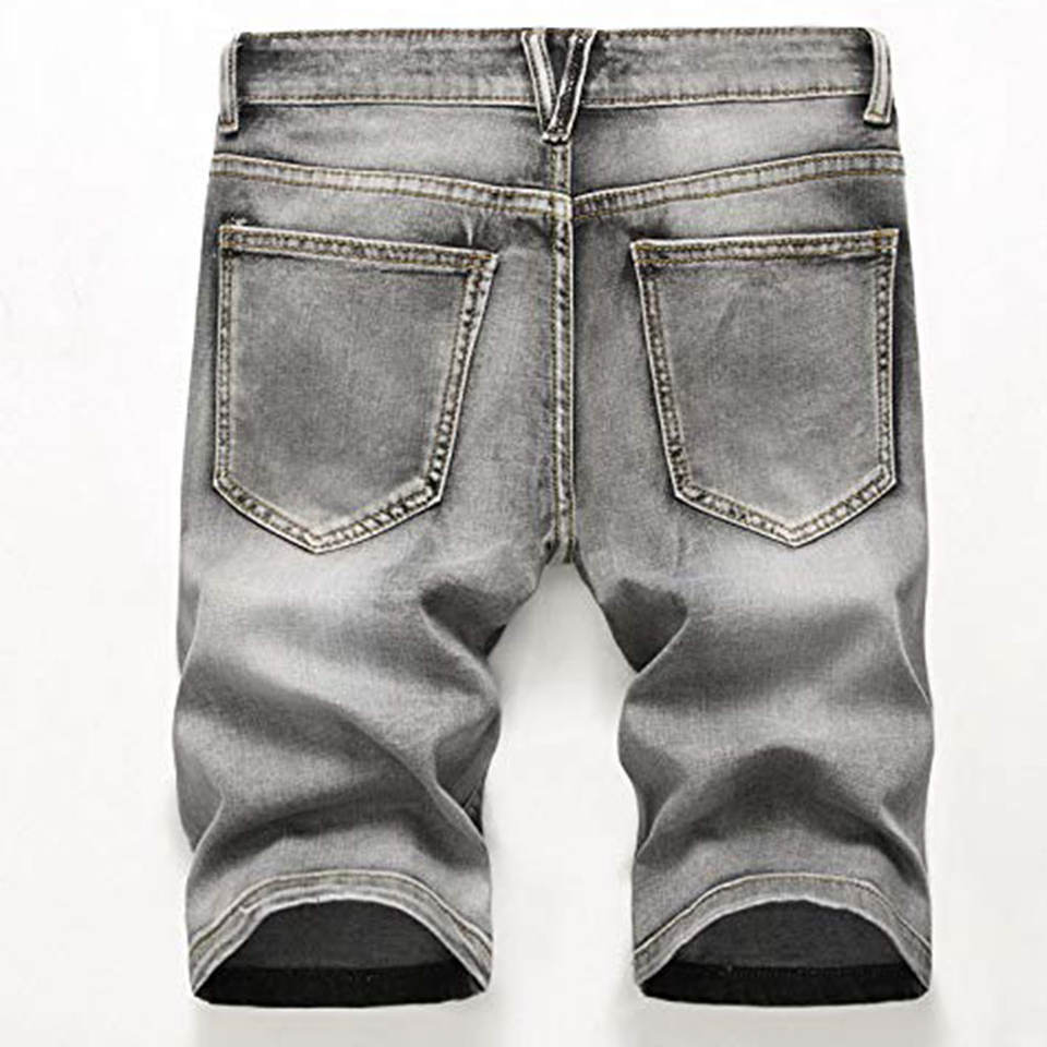 กางเกงยีนส์ขาสั้นผู้ชายแฟชั่นสไตล์ลำลองผ้าเดนิมยืดได้ กางเกงขาสั้นผ้าแคนวาสสไตล์ไฮสตรีท