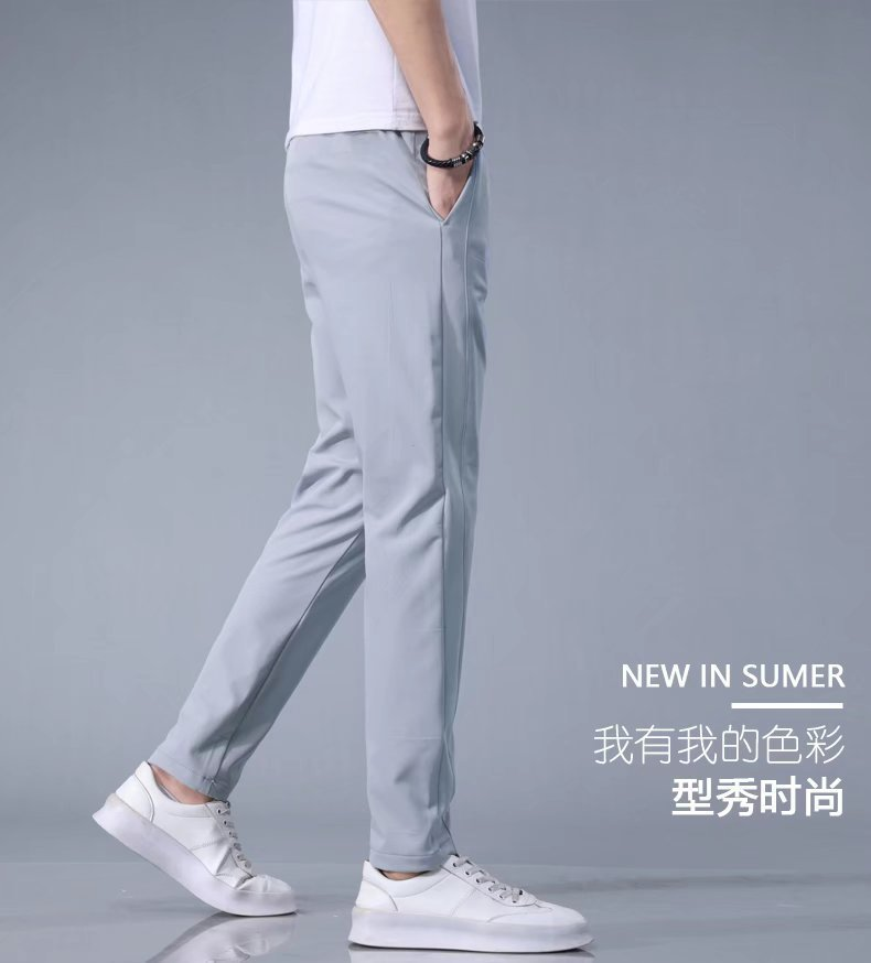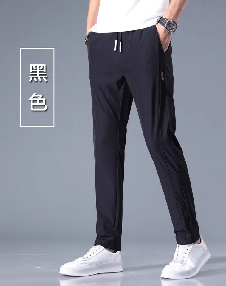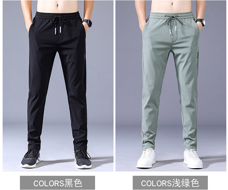 กางเกงยืดผ้าไอซ์ซิลค์สำหรับผู้ชายกางเกงกีฬาขาตรงเอวหลวมระบายอากาศได้ดีสีพื้นกางเกงกีฬาบาง
