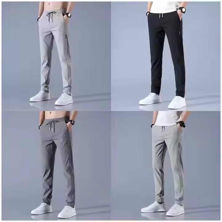 กางเกงยืดผ้าไอซ์ซิลค์สำหรับผู้ชายกางเกงกีฬาขาตรงเอวหลวมระบายอากาศได้ดีสีพื้นกางเกงกีฬาบาง