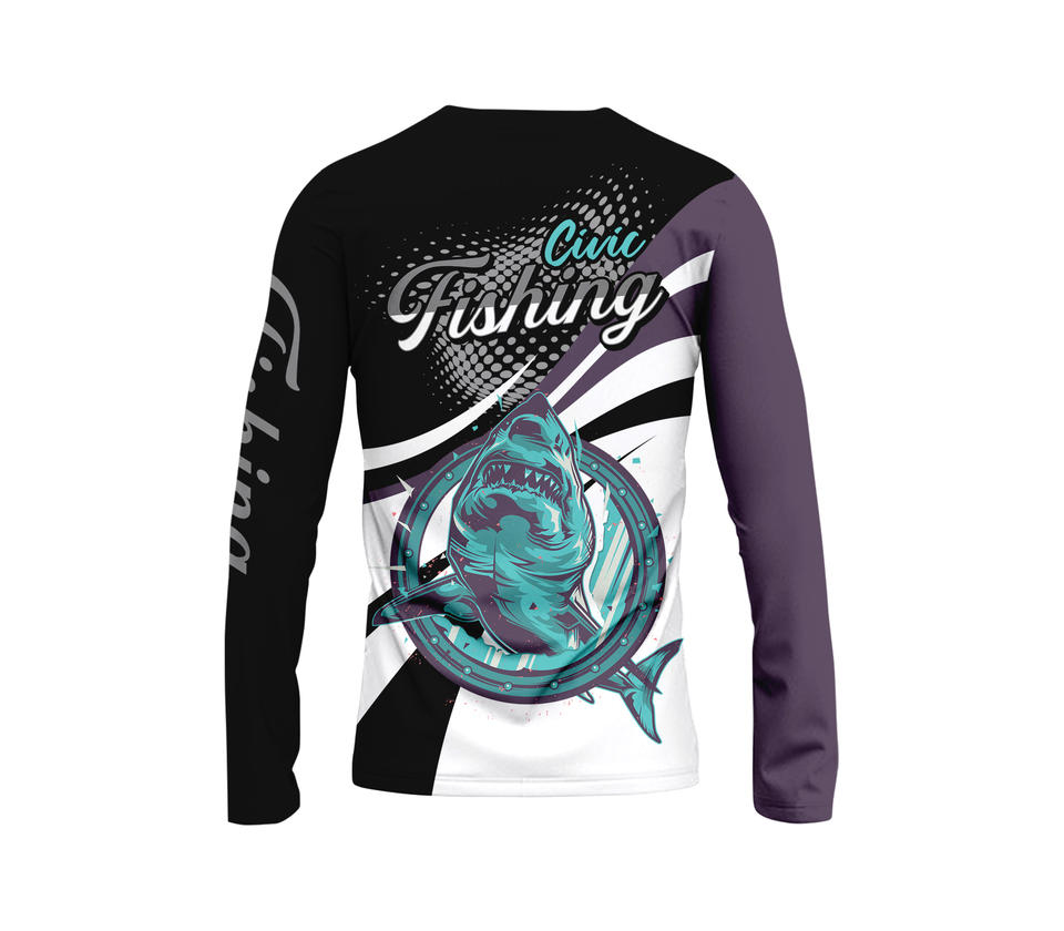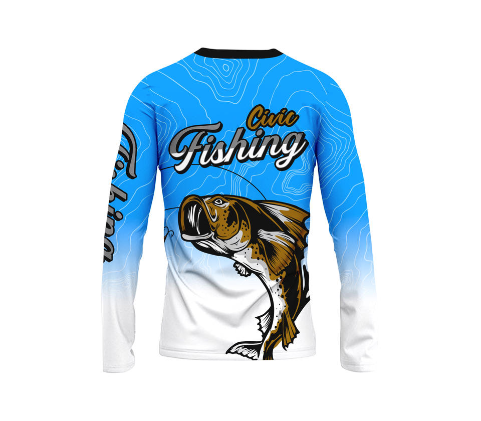 เสื้อผ้าตกปลาของผู้ชายเสื้อตกปลา UPF50พิมพ์ลายซับลิเมชันออกแบบป้องกันรังสี UV ตามสั่ง