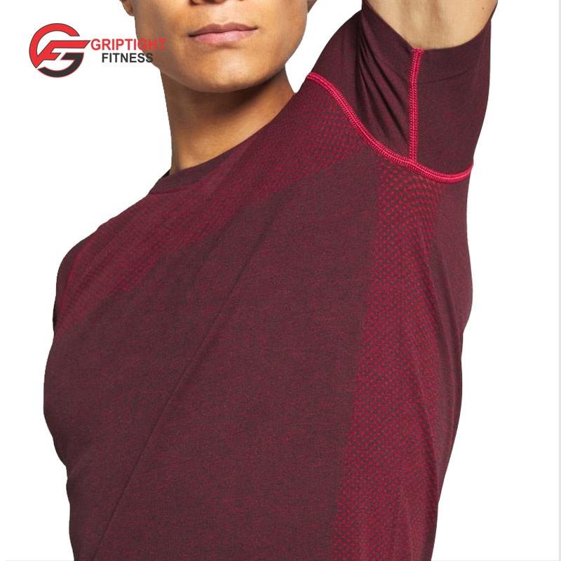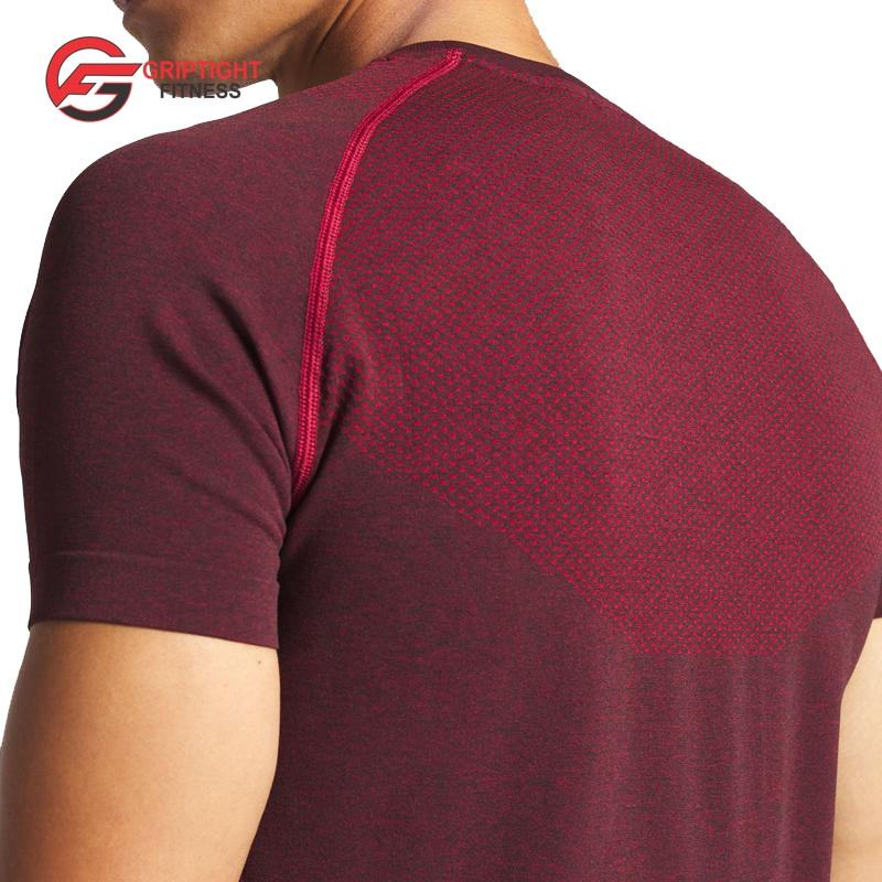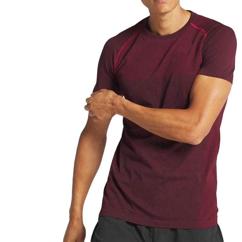 เสื้อยืดแขนสั้นสำหรับผู้ชาย,เสื้อยืดผ้าใยสังเคราะห์สแปนเด็กซ์สีแดงเข้มราคาส่ง