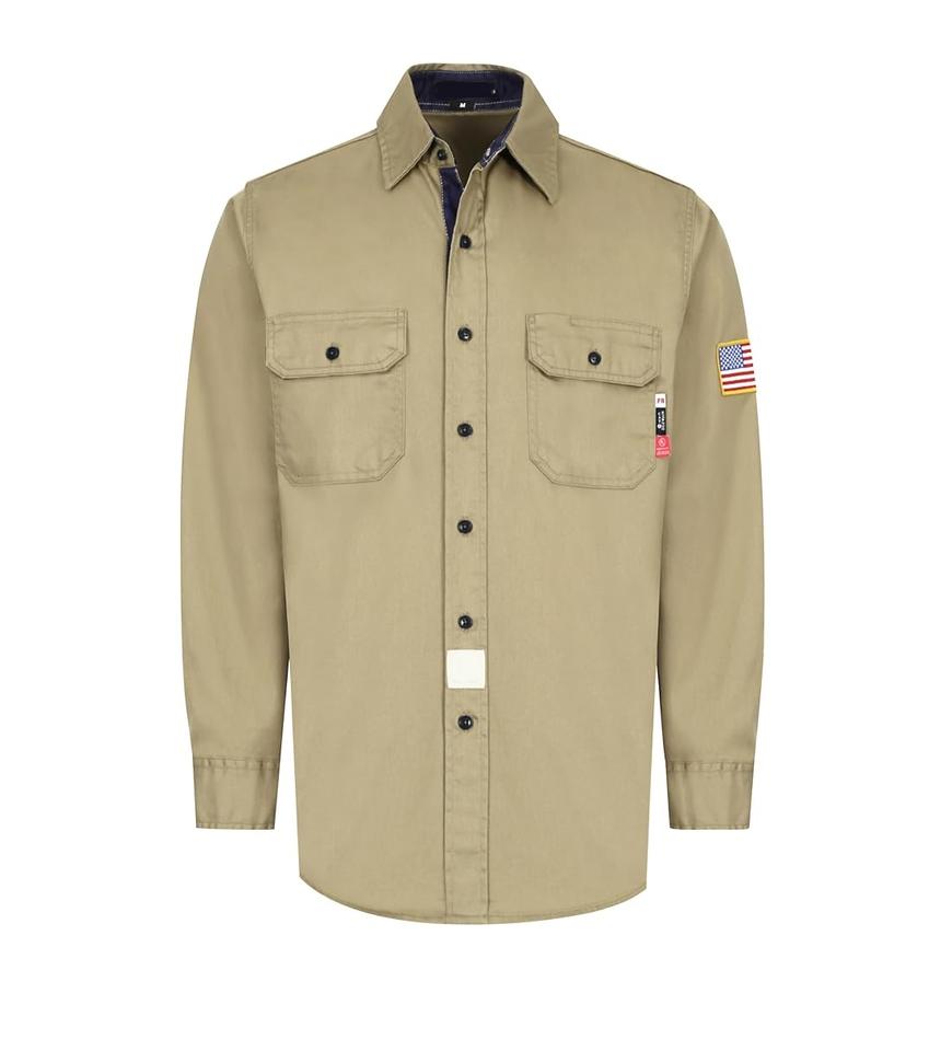เสื้อทำงานเชื่อมป้องกันไฟของผู้ชายเสื้อทำงานที่มีน้ำหนักเบา NFPA FR เสื้อเชิ้ตติดกระดุมเสื้อกันไฟสารหน่วงไฟ