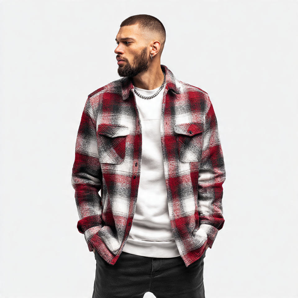 เสื้อแจ็คเก็ตผ้าสักหลาดผู้ชาย เสื้อเชิ้ตลายสก๊อตผู้ชาย