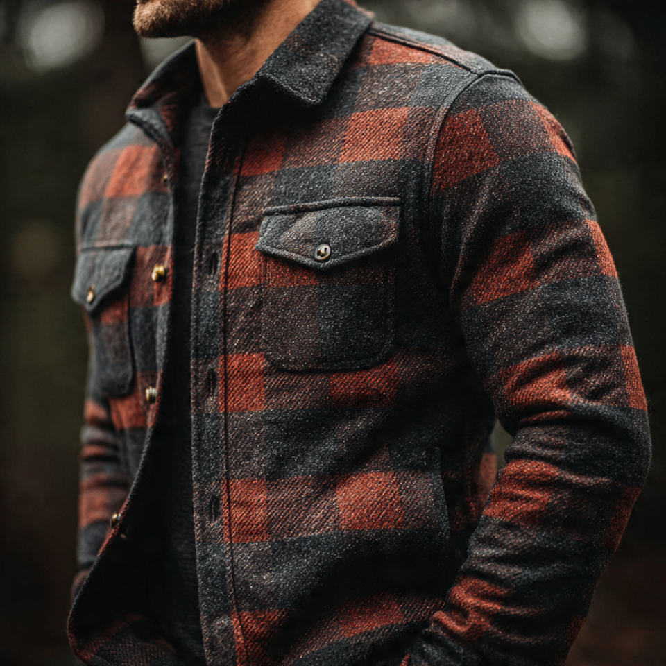 ชื่อสินค้า:เสื้อแจ็คเก็ตผ้าสักหลาดผู้ชาย เสื้อเชิ้ตลายสก๊อตผู้ชาย