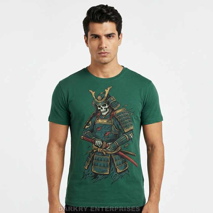 เสื้อยืดสีเขียวป่าลายกราฟิกซามูไรแบบกำหนดเอง สไตล์สตรีทแวร์ญี่ปุ่น ผ้าคอตตอนหวีอย่างดี เสื้อผู้ชาย