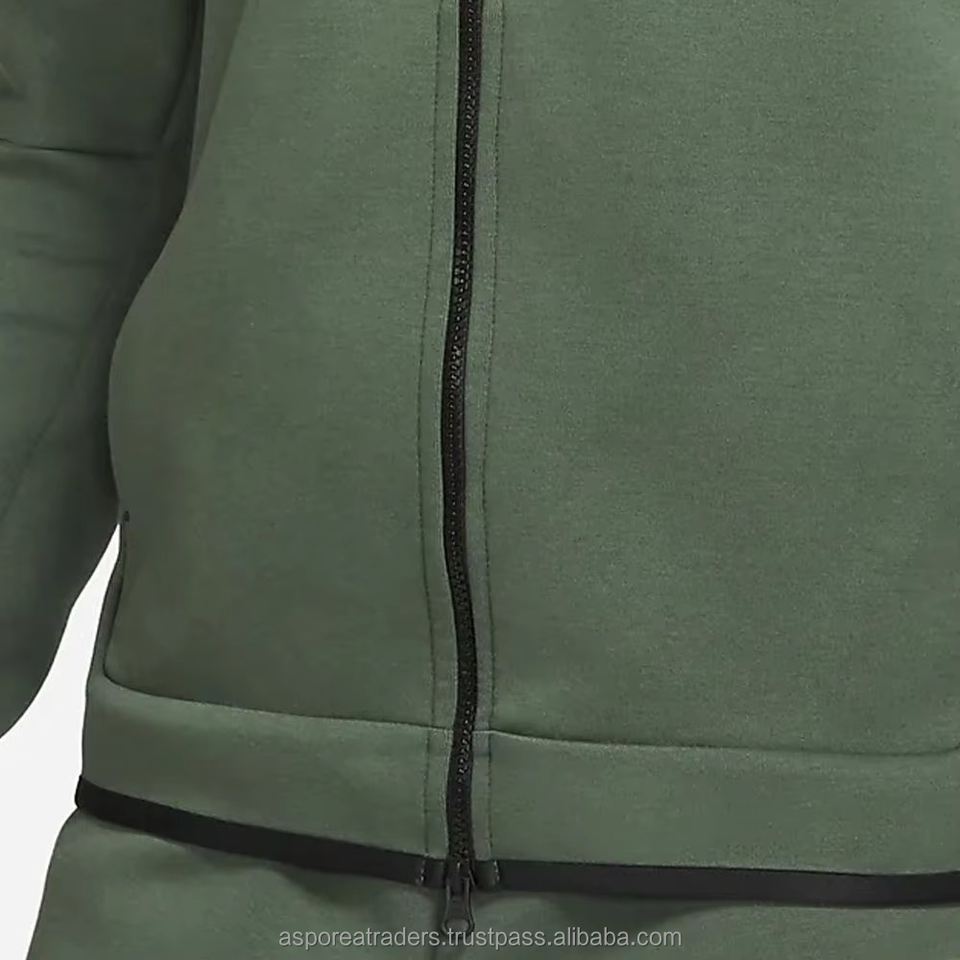ชุดวอร์มสองชิ้นสำหรับวิ่งจ๊อกกิ้งมีฮู้ดเทคโนโลยียืดได้พิมพ์ลายโพลีเอสเตอร์แบบเต็มซิปสำหรับผู้ชาย