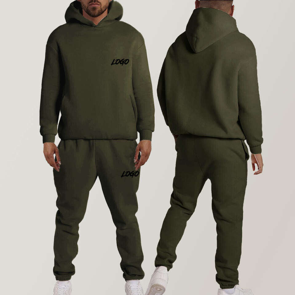 ชุดวอร์มมีฮู้ดแบบเต็มสำหรับผู้ชายชุดออกกำลังกายสองชิ้นมีสไตล์สำหรับยิมและลำลอง