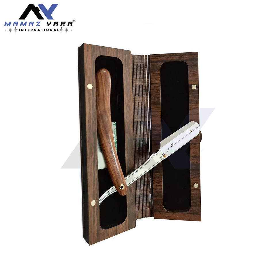 มีดโกนหนวดไม้สำหรับสุภาพบุรุษ ด้ามจับตรงแบบคลาสสิก พร้อมกล่องไม้สุดหรู สำหรับการโกนหนวดอย่างมีระดับและสะดวกสบายในชีวิตประจำวัน