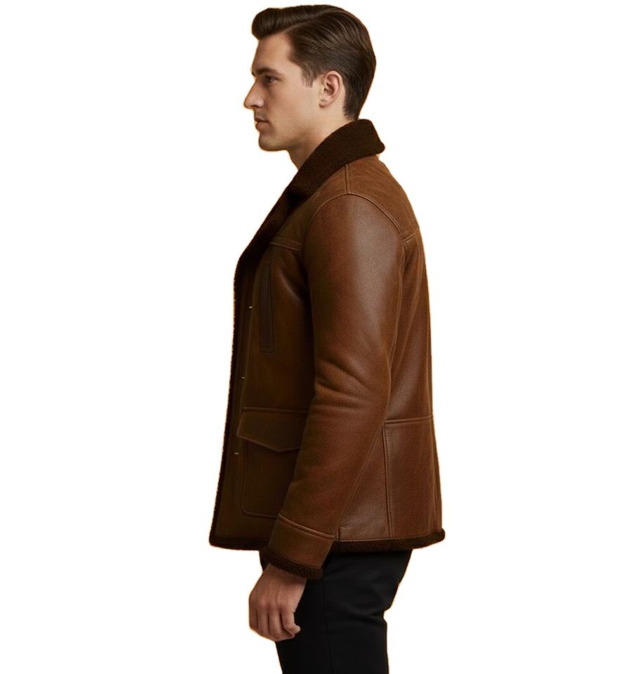 เสื้อโค้ทบุขนหนังวัวแท้สำหรับผู้ชาย สีน้ำตาล สำหรับฤดูหนาว รับผลิตแบบ OEM ODM ขายส่งจากโรงงาน