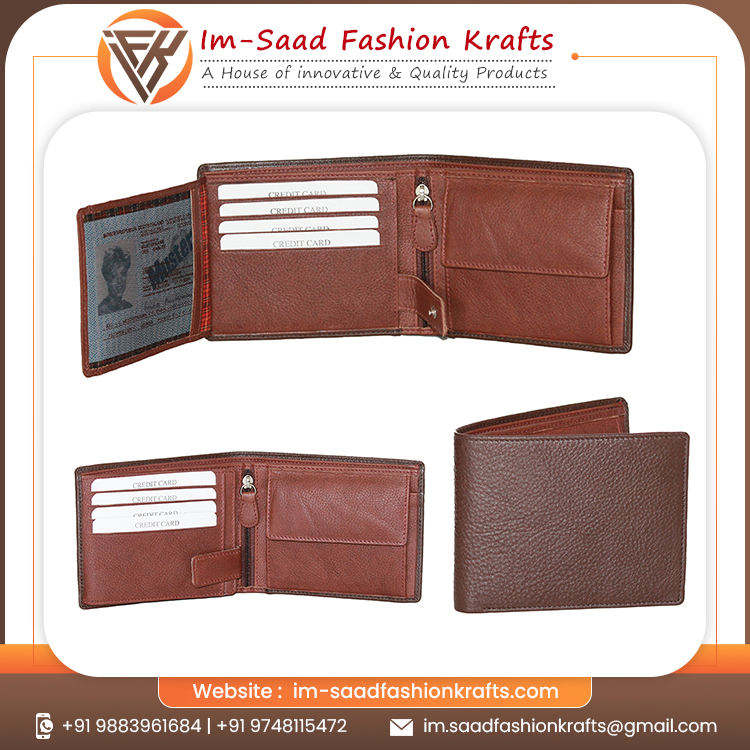 Men Genuine Leather Brown Bifold Wallet Slim Card Holder Multiple Slots Cash Pocket Minimal Everyday Carry Purse Accessory