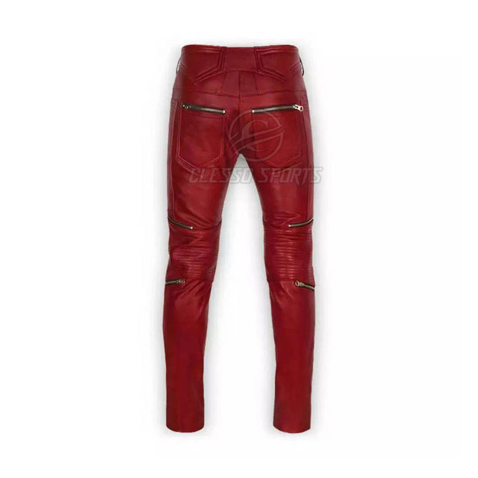 กางเกงหนังแท้ผู้ชายทรงเข้ารูปทันสมัยแฟชั่นลำลองสไตล์สตรีทแวร์ ชุดกางเกงหนังผู้ชาย