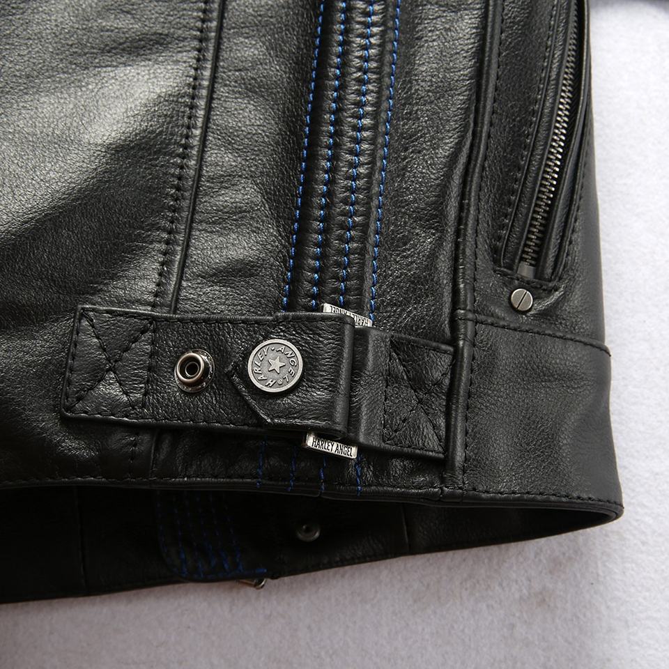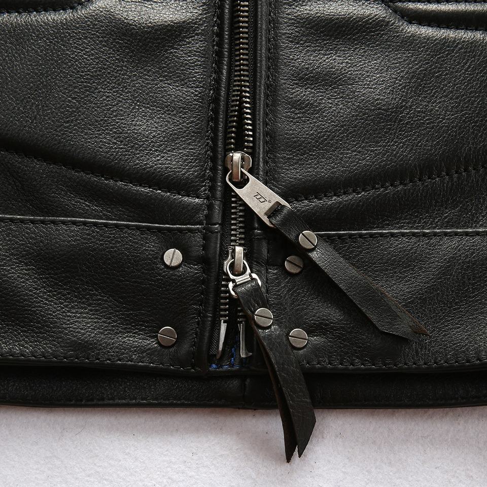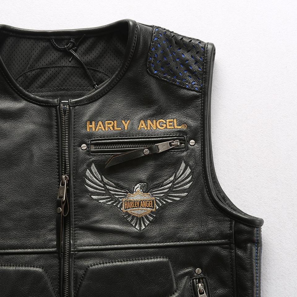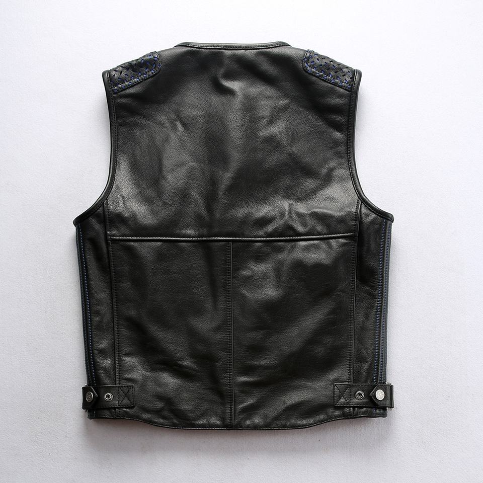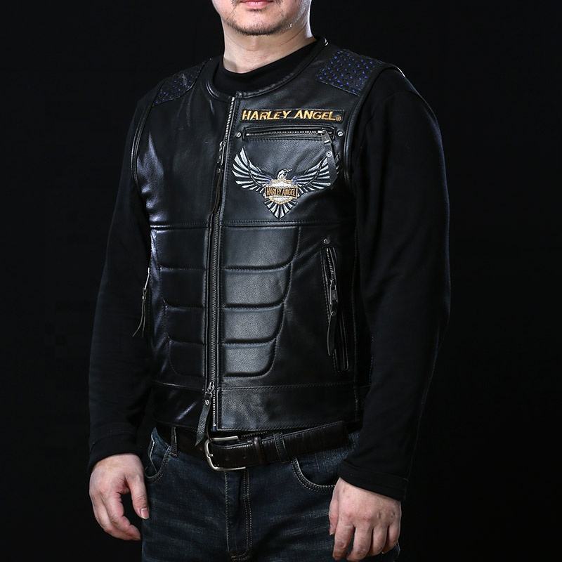 เสื้อกั๊กหนังแท้บุผ้านวมสำหรับขี่มอเตอร์ไซค์แบบมีซิปสำหรับผู้ชาย