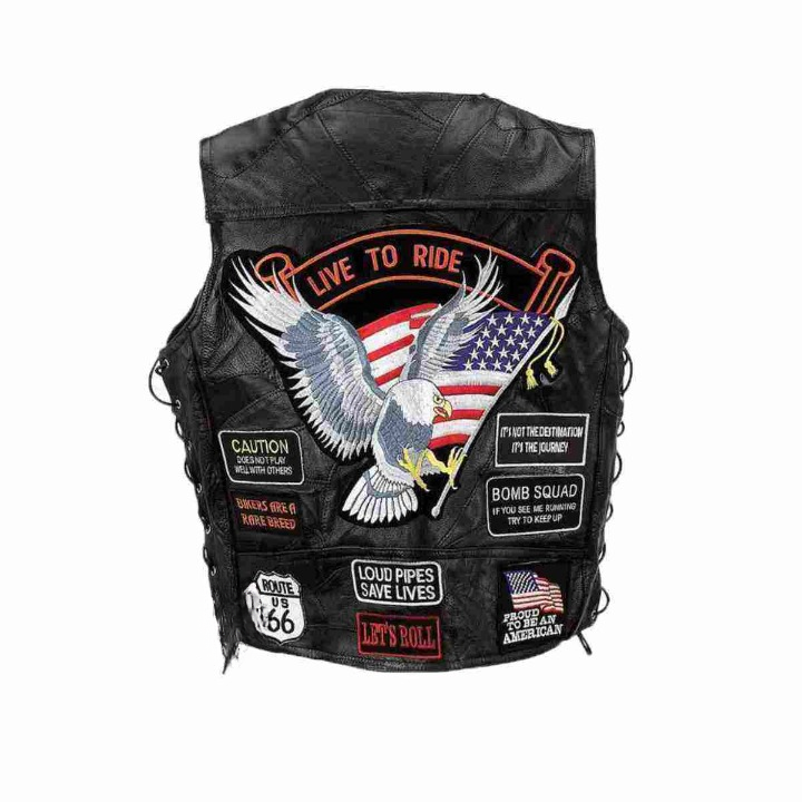 เสื้อกั๊กหนังแท้สำหรับผู้ชายเสื้อแจ็คเก็ตไบค์เกอร์แขนกุดสำหรับขี่มอเตอร์ไซค์สไตล์ตะวันตกแฟชั่นวินเทจและสตรีทแวร์