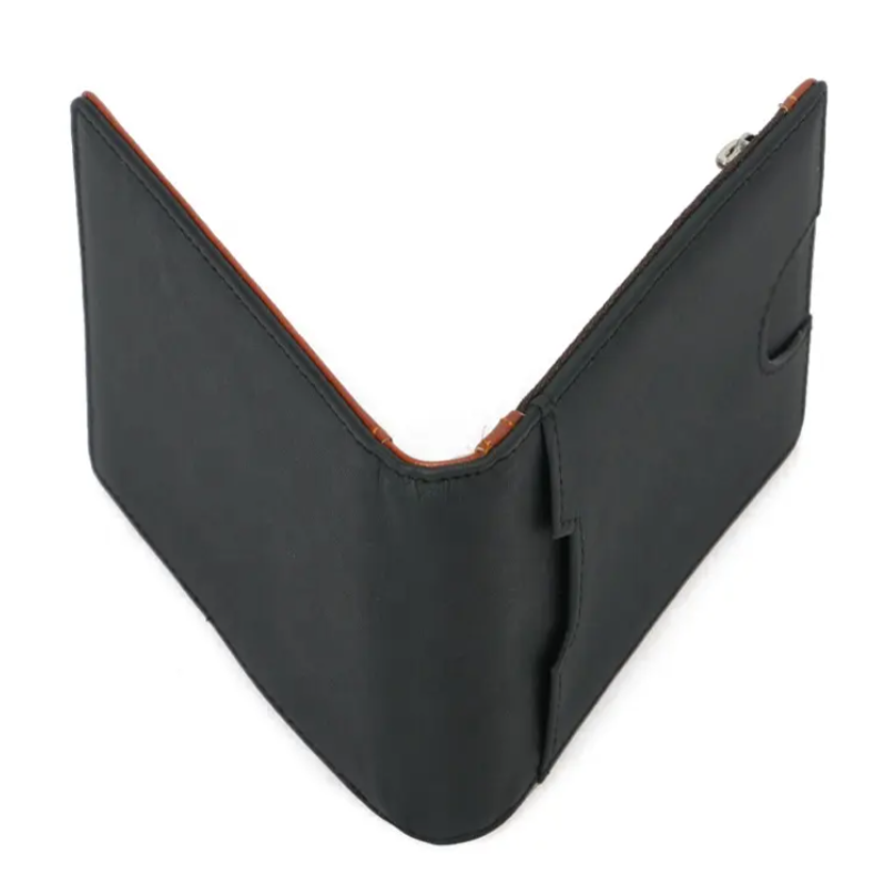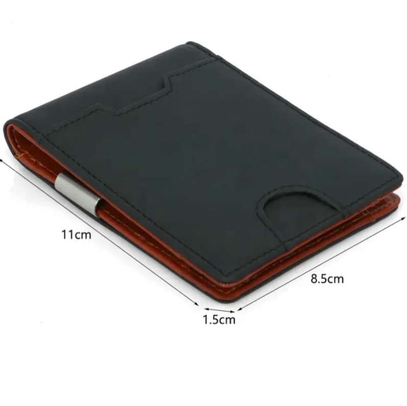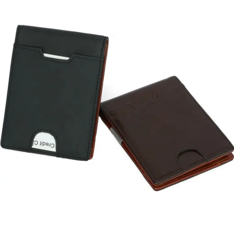 กระเป๋าสตางค์หนังแท้สำหรับผู้ชาย พร้อมฝาพับและซับในโพลีเอสเตอร์ ดีไซน์บางเฉียบแข็งแรงพิเศษสำหรับใส่ในกระเป๋าหน้า มีช่องใส่บัตรด้านนอก