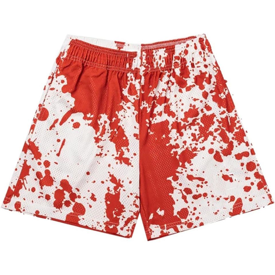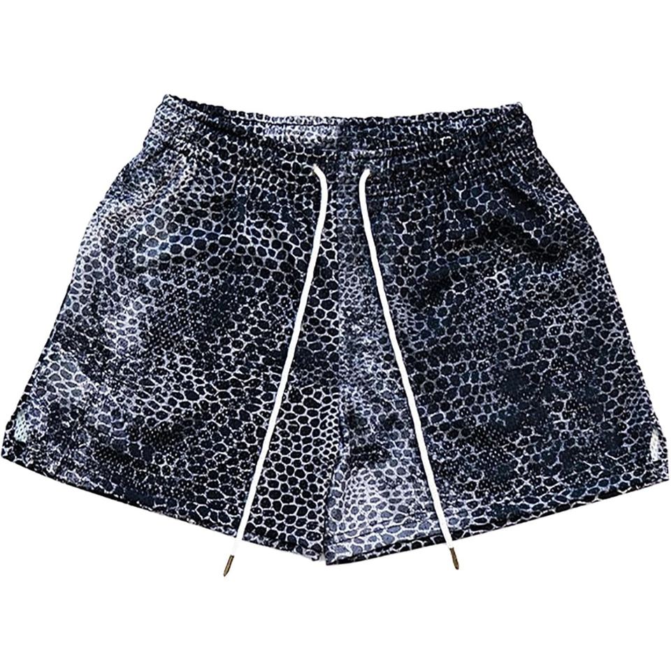 กางเกงขาสั้นผู้ชายลายกราฟิกพิมพ์ลายตาข่าย ดีไซน์แบบซับลิเมชั่น แห้งเร็ว เหมาะสำหรับวิ่ง ออกกำลังกาย ใส่ลำลอง หรือเล่นกีฬา