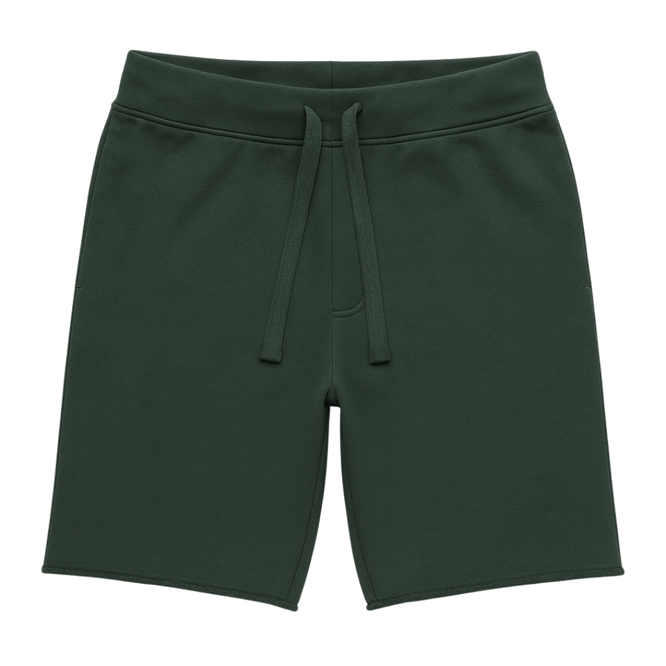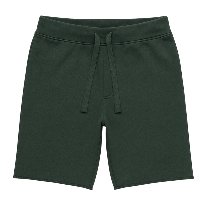 กางเกงขาสั้นผู้ชายผ้าเฟรนช์เทอร์รี่สีเขียว 100% ผ้าฝ้ายออร์แกนิคคุณภาพสูง ผ่านการซักล่วงหน้า ได้รับการรับรองมาตรฐาน GOTS ทรงคลาสสิก สวมใส่สบาย