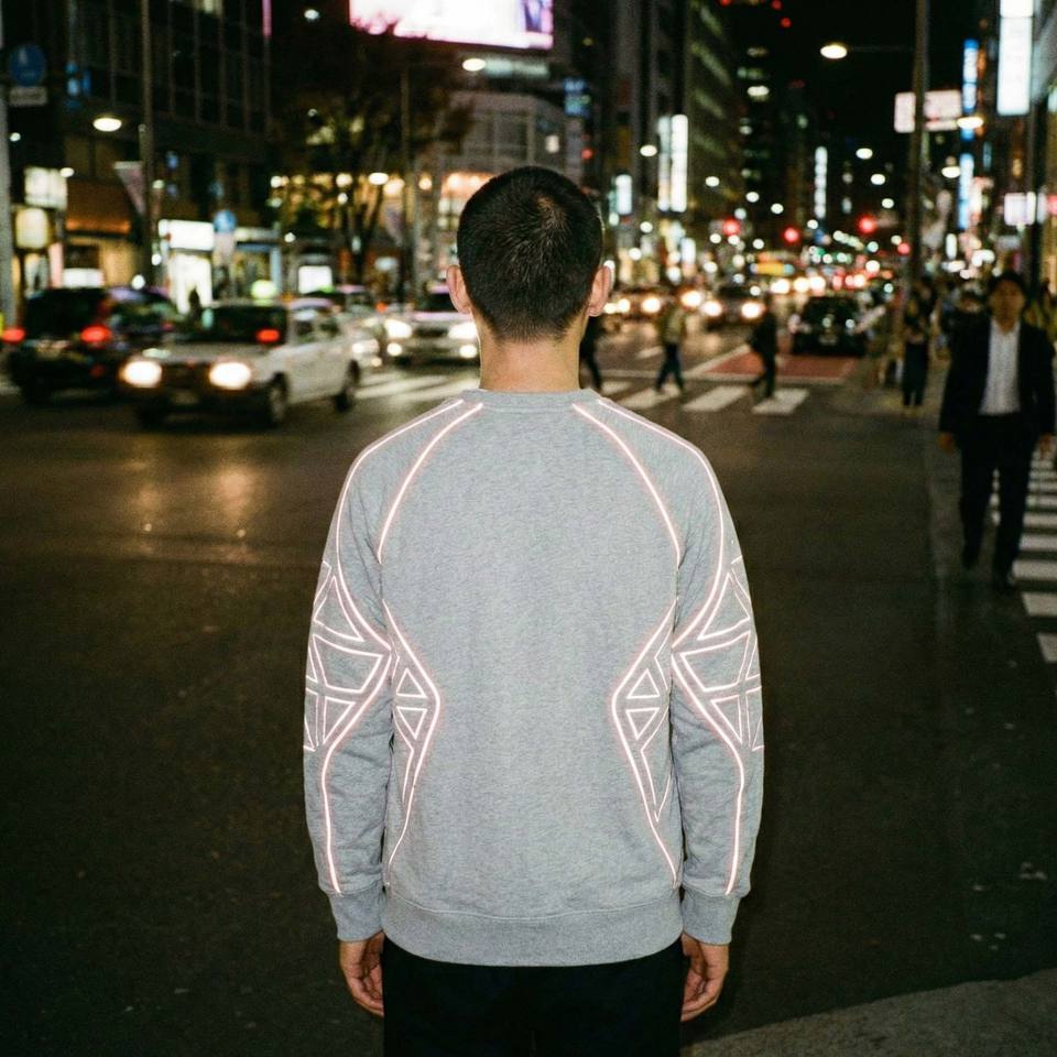 เสื้อสเวตเชิ้ตผู้ชายสีเทา แต่งแถบสะท้อนแสง 3M ผ้าฝ้าย 100% สำหรับฤดูหนาว สไตล์สตรีทแวร์ คอกลม แขนยาว สะท้อนแสงในเวลากลางคืน