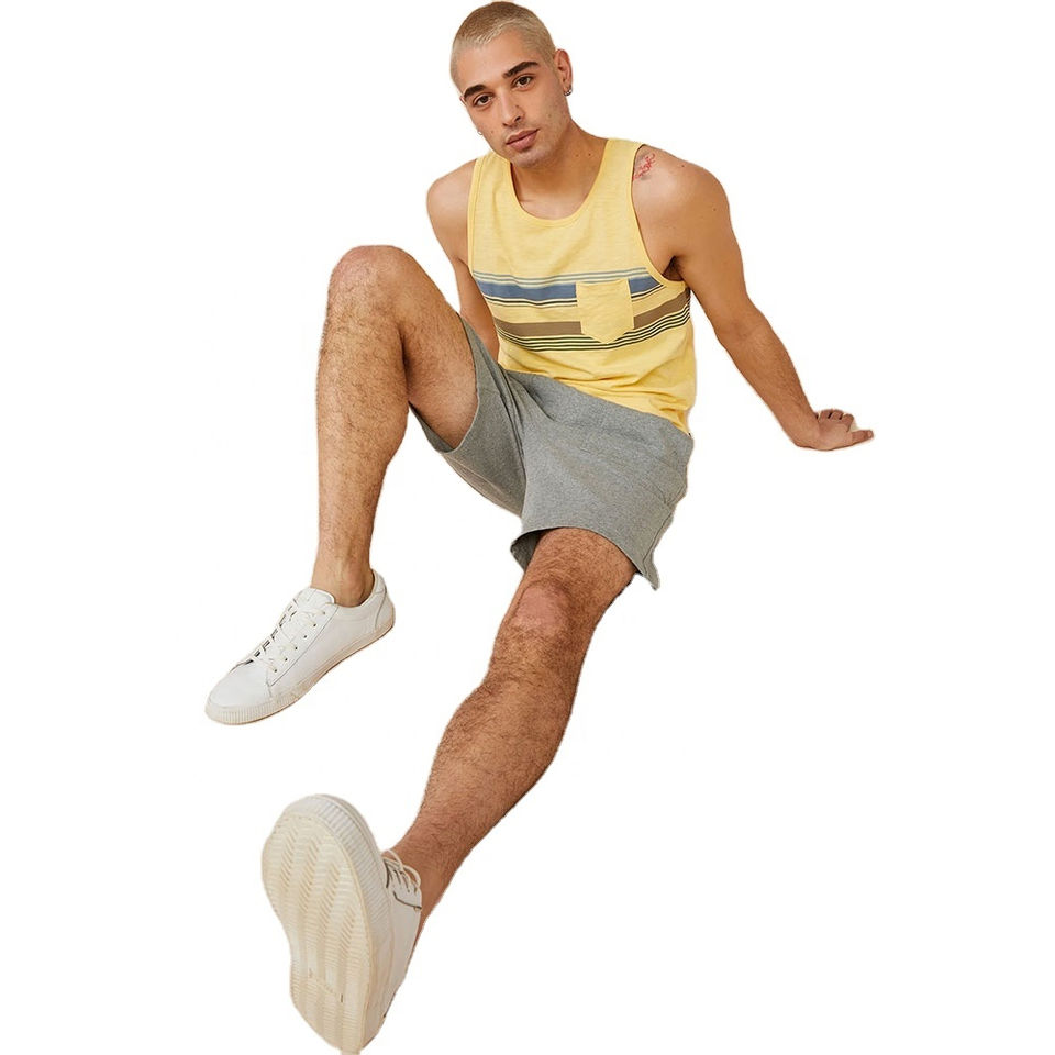 เสื้อกล้ามผู้ชายสีเทามีกระเป๋าสีดำผ้าฝ้ายนุ่มแขนกุดสไตล์ลำลองเสื้อกล้ามเหมาะสำหรับฤดูร้อน