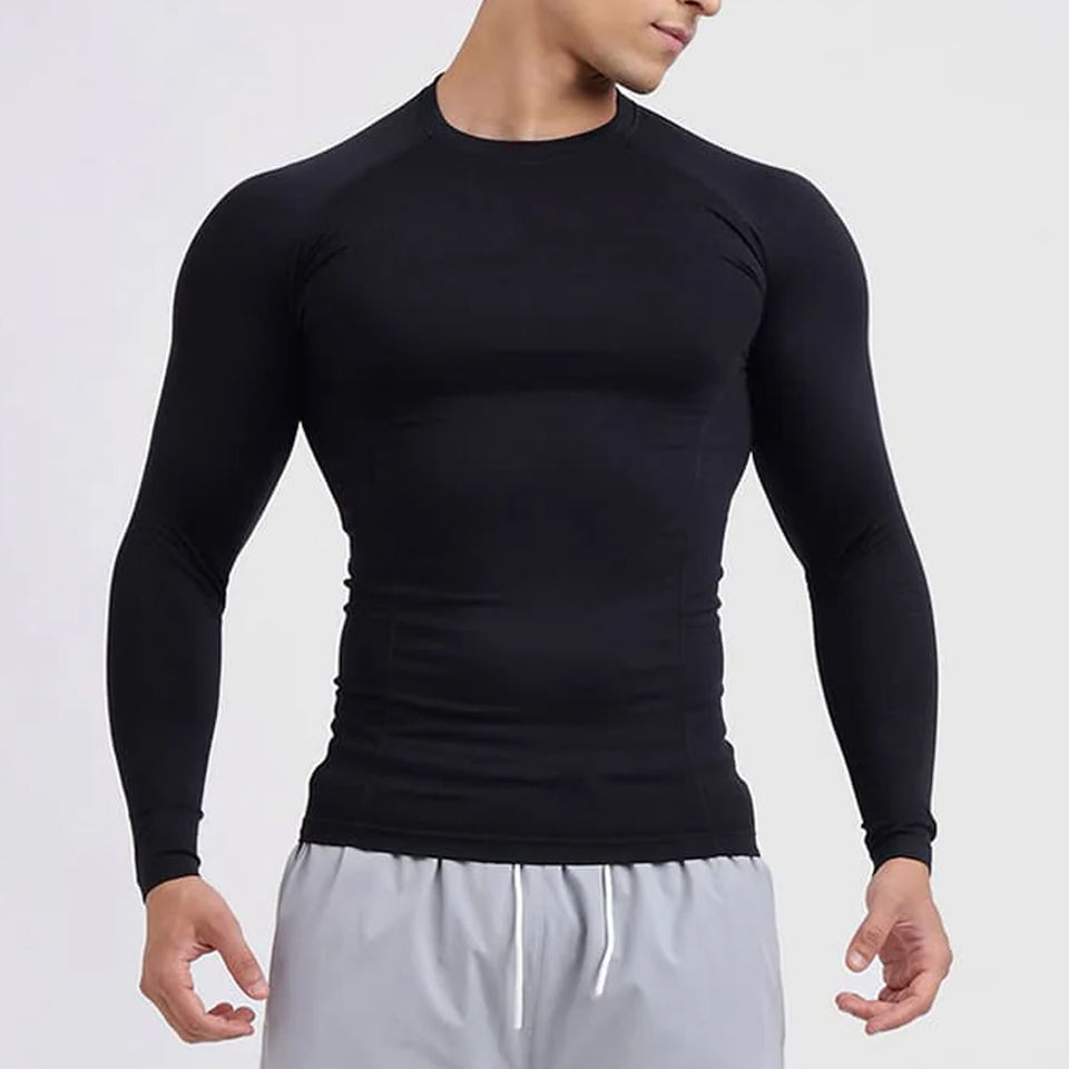 เสื้อรัดรูปแขนยาวสำหรับผู้ชายเสื้อรัดรูปแขนยาวแห้งเร็วสำหรับใส่ไปยิมในยิมของผู้ชาย