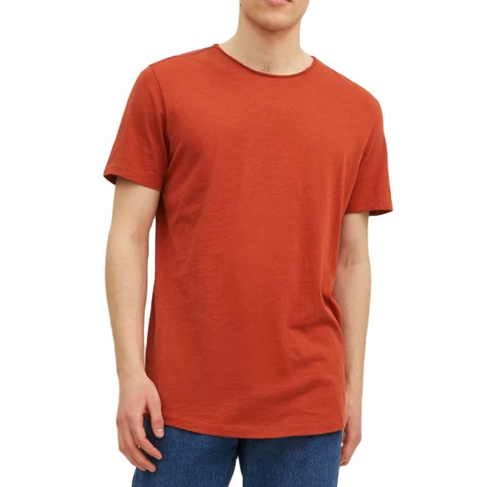 เสื้อยืดแขนสั้นผู้ชาย คอวี สีส้ม ผ้าคอตตอนเนื้อเจอร์ซีย์ เสื้อยืดพื้นฐานพรีเมียมสำหรับผู้ชาย