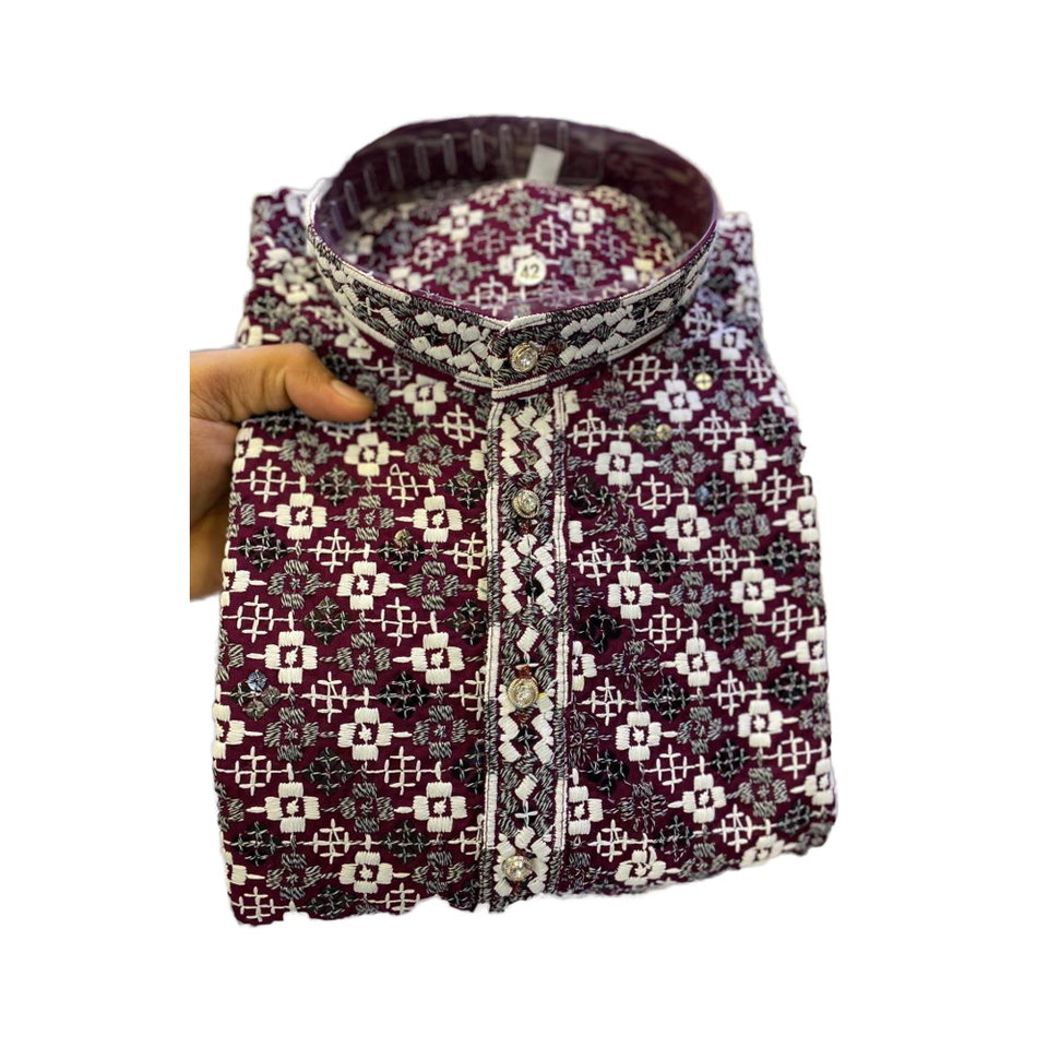 ชุดคุर्ตา ปาจามา ปักลายชิกันการี สำหรับผู้ชาย งานแต่งงานแบบอินเดีย ชุดพิธีการสำหรับผู้ชาย