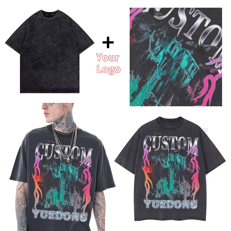 เสื้อยืดผู้ชายทรงโอเวอร์ไซส์สไตล์วินเทจ คุณภาพสูง ผ้าฝ้าย 100% ซักแบบ Mineral Wash สีดำ ระบายอากาศได้ดี พิมพ์ลายด้วยเทคนิคซิลค์สกรีน
