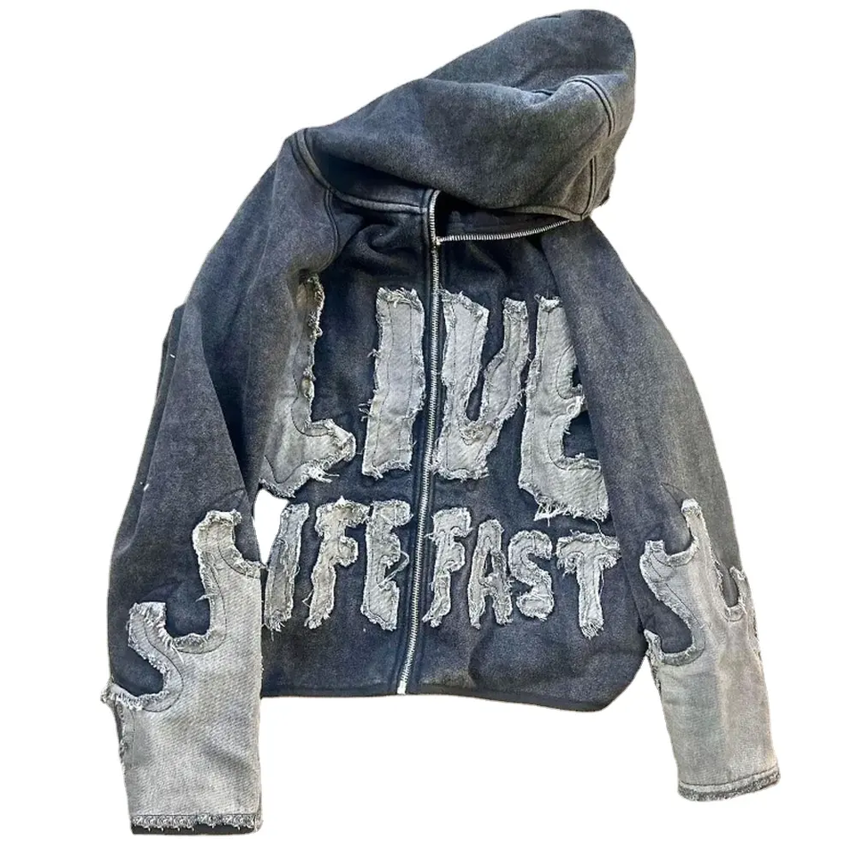 Men Heavyweight High Quality Comfortable Streetwear 450GSM Custom Distressed Embroidery Hoodie 100% Cotton Zip up Hoodie for Men
