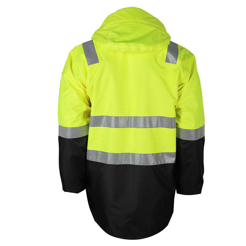 เสื้อแจ็กเก็ตนิรภัยสะท้อนแสงสำหรับผู้ชายชุดทำงานมีฮู้ดกันน้ำฤดูหนาวโลโก้ตามสั่งสำหรับช่างก่อสร้าง