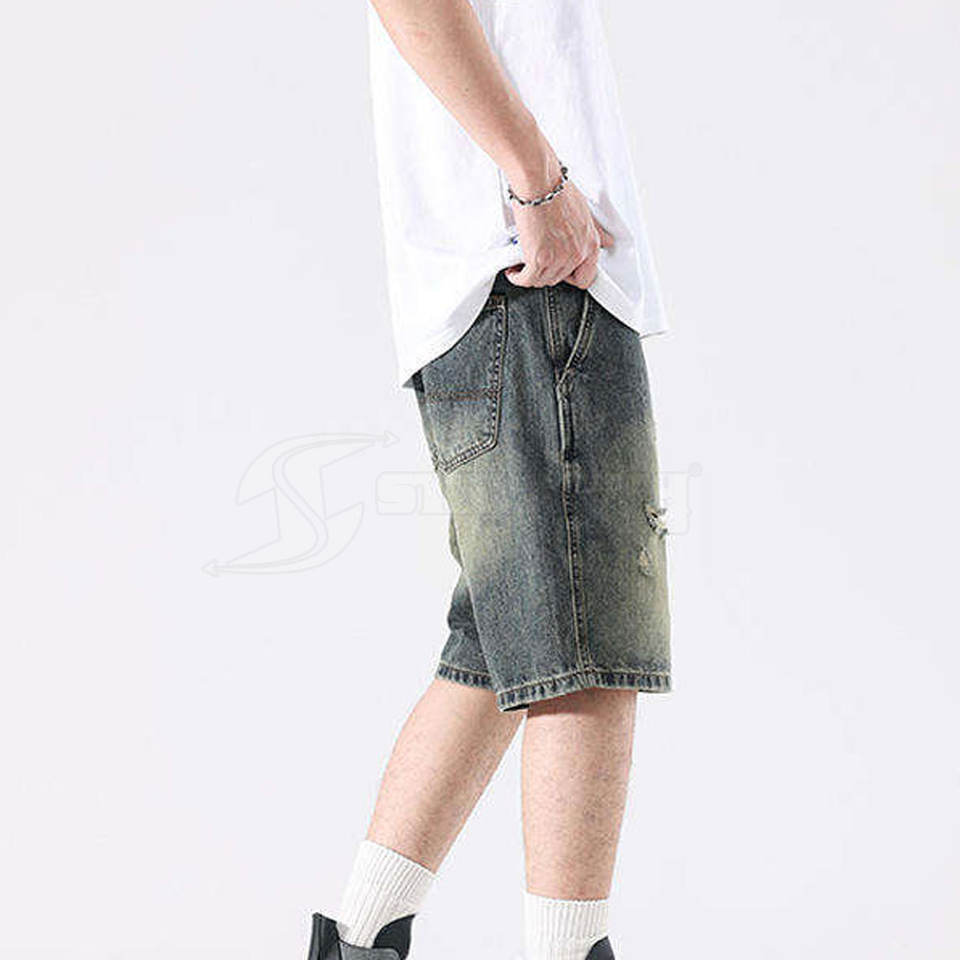 กางเกงขาสั้นผู้ชายคุณภาพสูง ลุคขาดๆ ซีดๆ สำหรับใส่ในชีวิตประจำวันช่วงฤดูร้อน