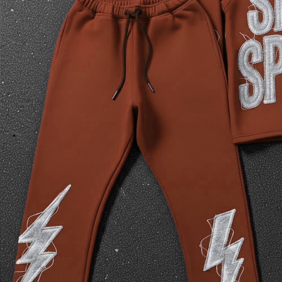 ชุดวอร์มผู้ชายคุณภาพสูงแบบมีฮู้ด ผ้าฟลีซหนานุ่ม ทรงโอเวอร์ไซส์ พร้อมลายปักแบบดิสเทรส เสื้อฮู้ดดี้และกางเกงขายาว
