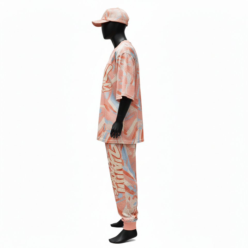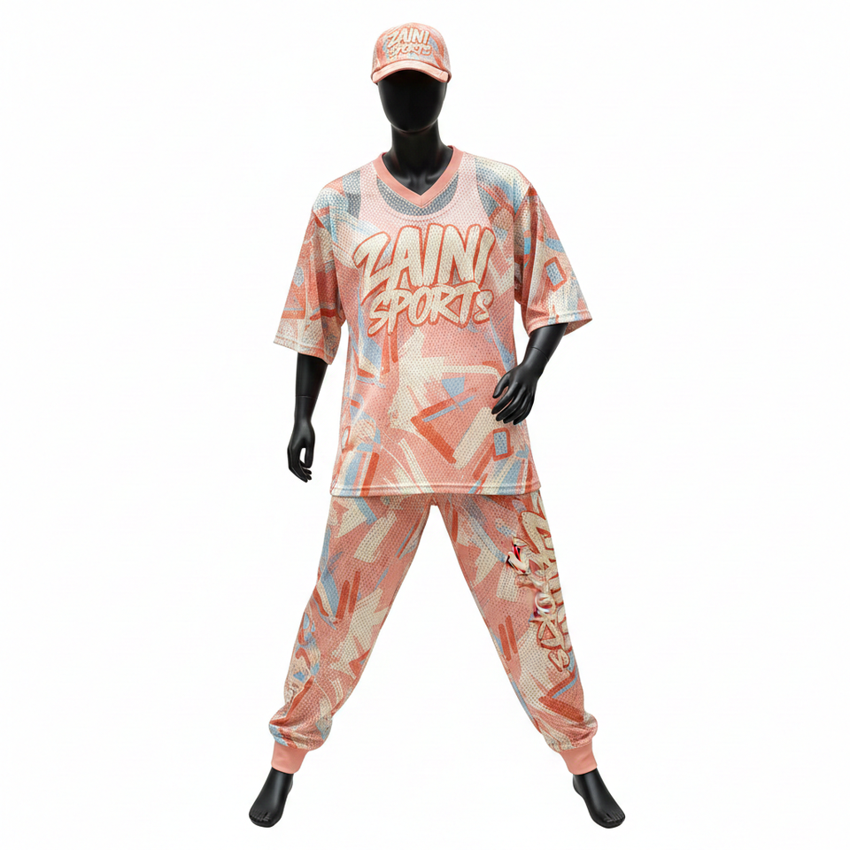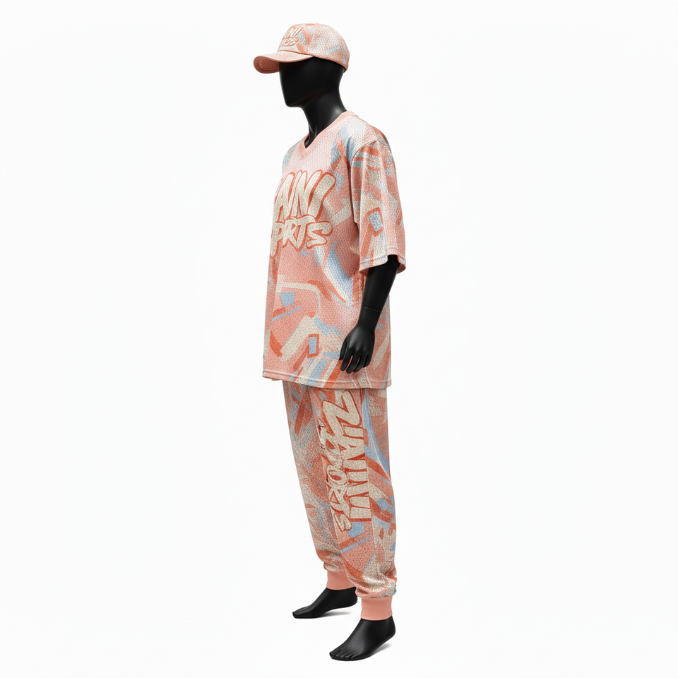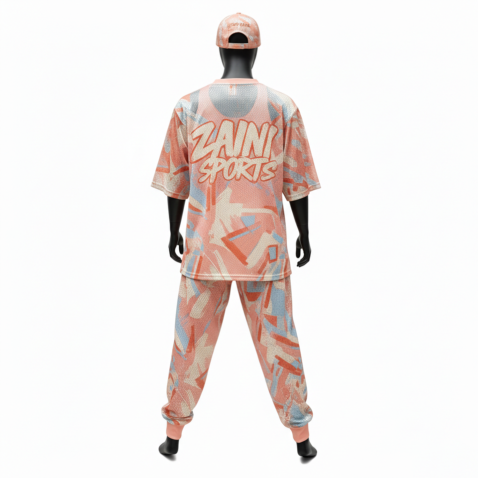 ชุดเซ็ต 2 ชิ้น ผ้าตาข่ายคุณภาพสูงสำหรับผู้ชาย เนื้อผ้าโพลีเอสเตอร์นุ่ม 180 GSM พิมพ์ลายทั่วตัว พร้อมโลโก้สั่งทำพิเศษ