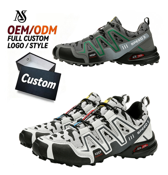 รองเท้าเดินป่าคุณภาพสูงสำหรับผู้ชาย ลายพราง กันลื่น ทนทานต่อการสึกหรอ ระบายอากาศได้ดี
