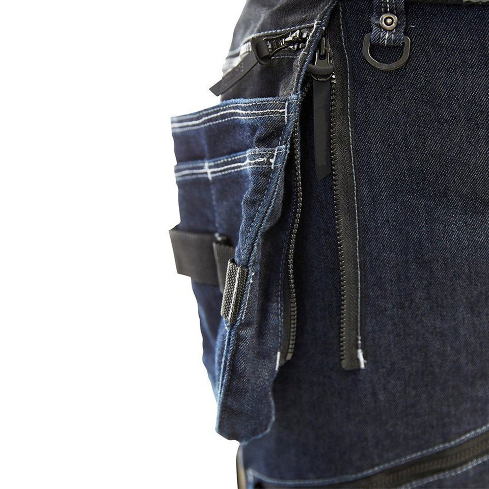กางเกงผู้ชายแบบสะท้อนแสงสำหรับงานนิรภัย ผ้าคอร์ดูรอย ทรงตรง เสริมเข่า ทนทาน มีกระเป๋าอเนกประสงค์ ใส่เครื่องมือได้