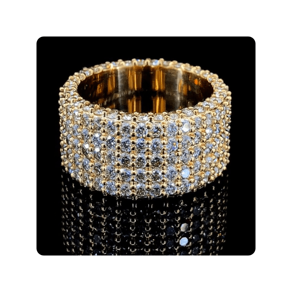 แหวนฮิปฮอปผู้ชาย CVD เพชร 5 แถว ดีไซน์เพชรเต็มวง เงินแท้ 925 ชุบทอง