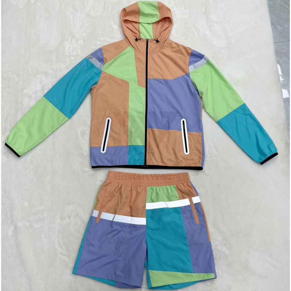 ชุดกีฬา2ชิ้นสำหรับใส่วิ่งแห้งเร็วชุดออกกำลังกายสีบล็อกมีฮู้ดสำหรับผู้ชาย
