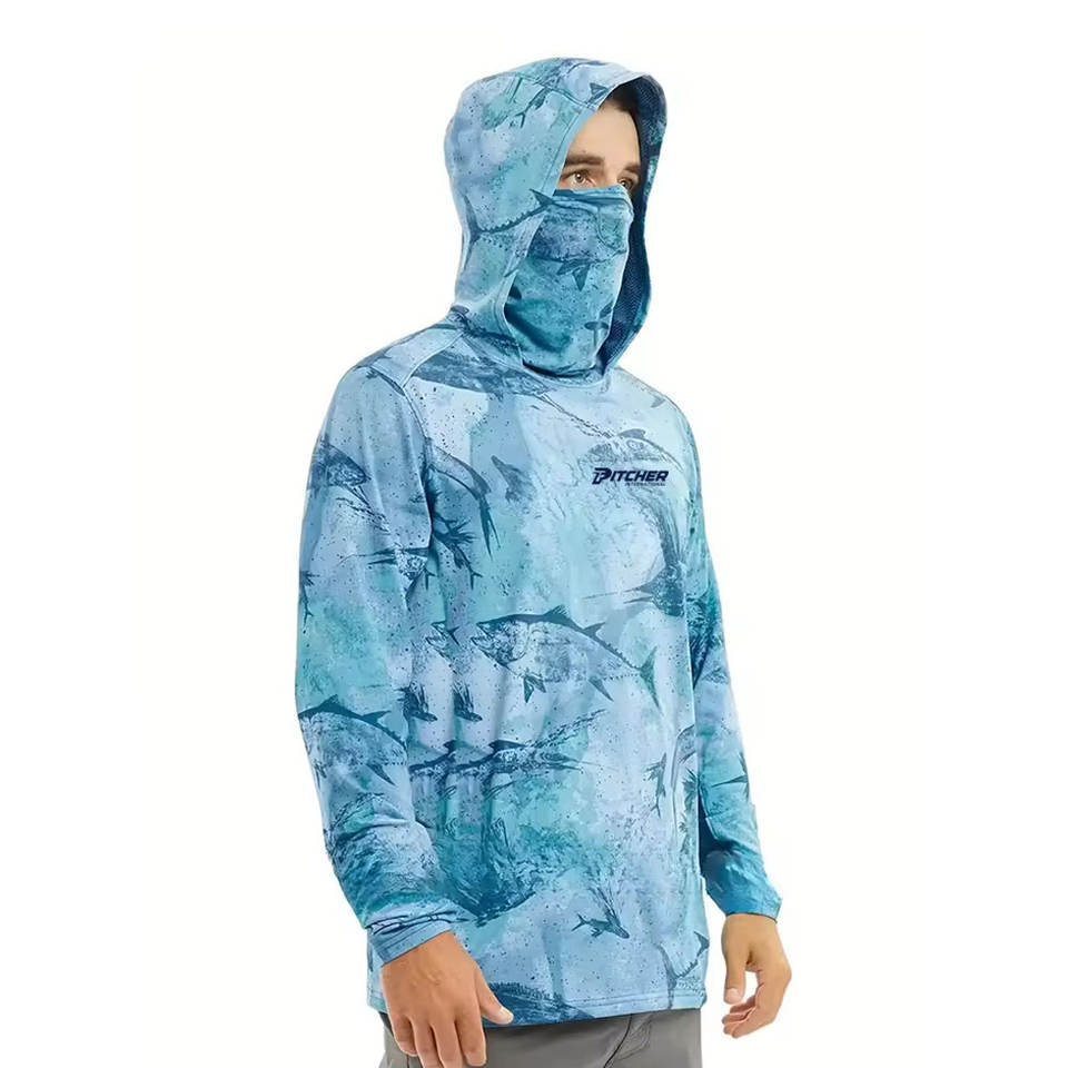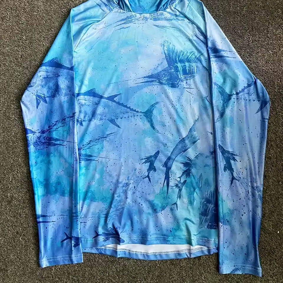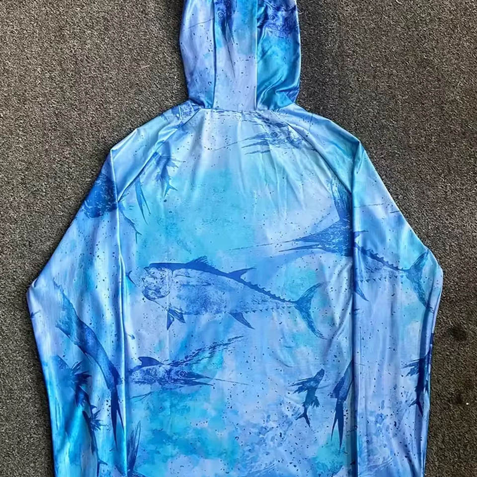 เสื้อตกปลามีฮู้ดสำหรับผู้ชาย, เสื้อ100% โพลีเอสเตอร์น้ำหนักเบาป้องกัน UV สำหรับกิจกรรมตกปลากลางแจ้งในฤดูร้อน