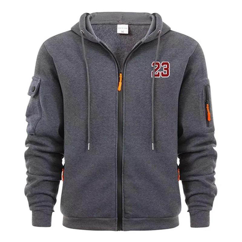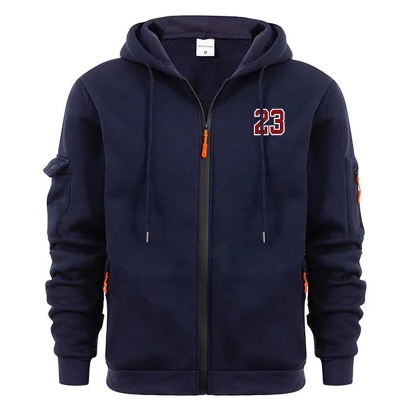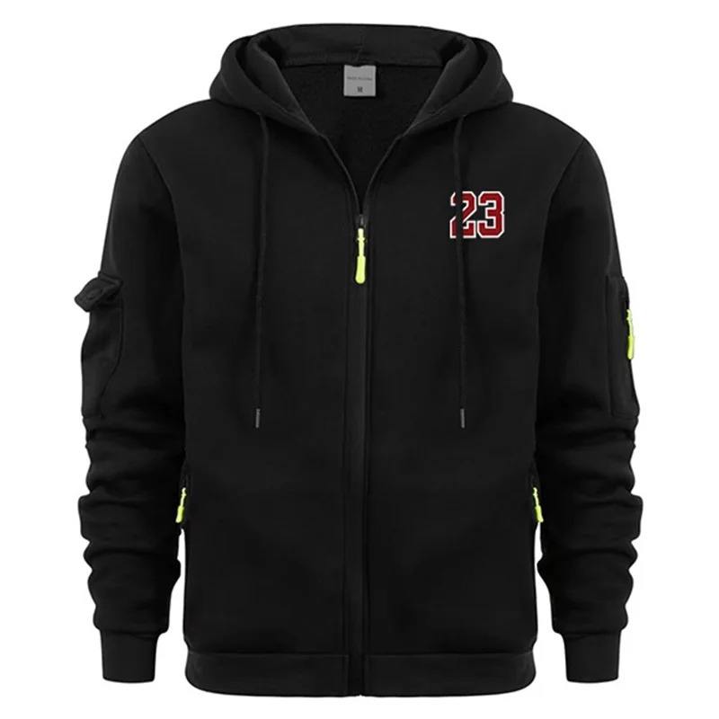 เสื้อสเวตเตอร์ทรงหลวมมีฮู้ดสำหรับผู้ชาย, เสื้อแจ็กเก็ตวิ่งแฟชั่นใหม่มีซิปพิมพ์ลาย23แบบมีฮู้ดสำหรับฤดูใบไม้ร่วงฤดูหนาว