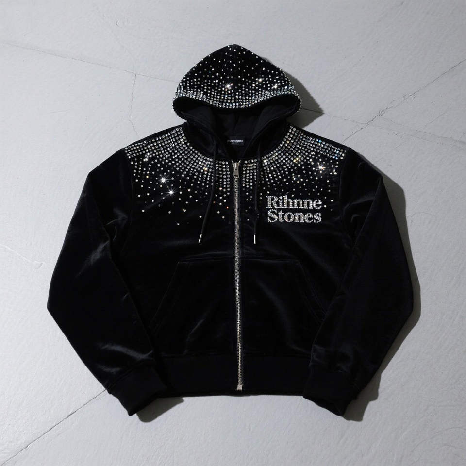 Men Hoodie Custom OEM Crystal Rhinestone Zip Up Sweatshirt Premium Cotton Blend Streetwear