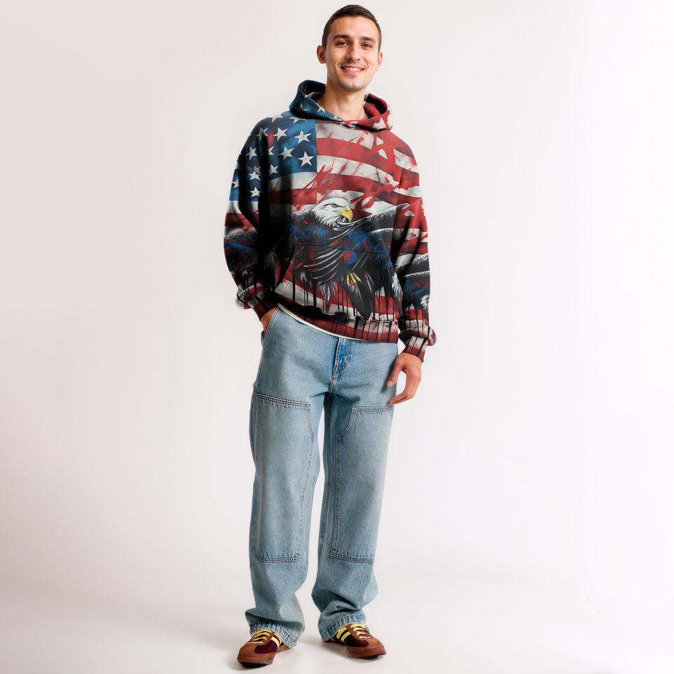 เสื้อสเวตเตอร์มีฮู้ดลายธงสำหรับผู้ชาย, เสื้อสเวตเชิ้ตมีฮู้ดทรงหลวมแนวสตรีทเสื้อ Y2k พิมพ์ลายกราฟิกสำหรับผู้ชายเนื้อผ้าที่มีน้ำหนักเบา