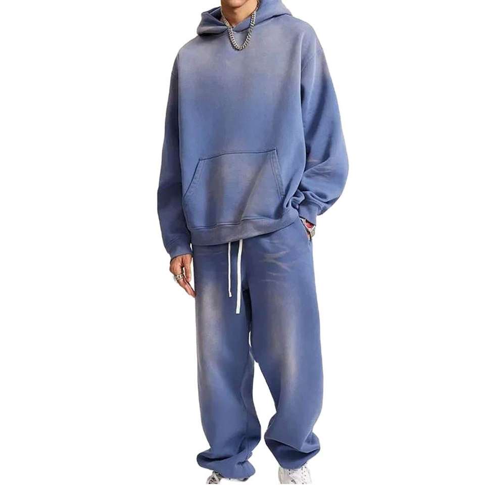 ชุดฮู้ดดี้ผู้ชายแบบโอเวอร์ไซส์ ผ้าคอตตอนฟลีซ 100% ล้างสีแบบแอซิด ทรงไหล่ตก ผลิตเสื้อผ้าแทรคสูท