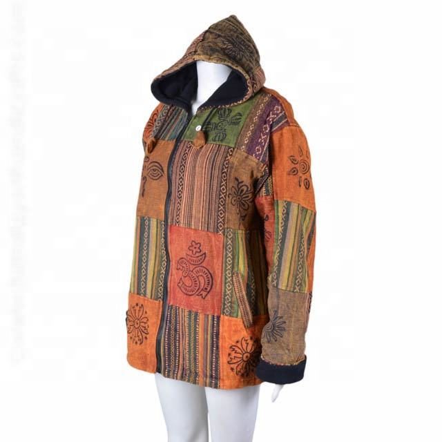 เสื้อฮู้ดดี้ผู้ชาย รุ่นใหม่ล่าสุด แจ็คเก็ตแบบปะติดปะต่อ ทำมือ สไตล์บาฮา เสื้อฮู้ดดี้เนปาล เสื้อผ้าฤดูหนาว ซับในขนแกะ ฮิปปี้ โบโฮ แจ็คเก็ต GCT 342