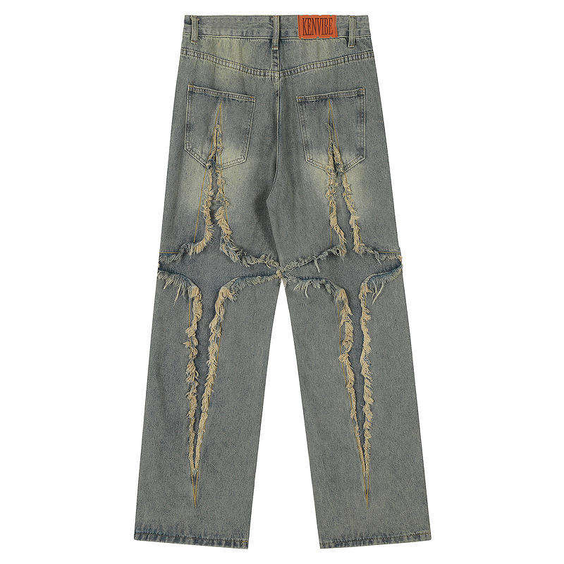 กางเกงยีนส์ผู้ชายทรงหลวมคุณภาพสูง ดีไซน์ใหม่ทันสมัย สามารถสั่งทำได้ แบบย้อมสีพื้น ทรงหลวม แบบขาดๆ สำหรับผู้ชาย