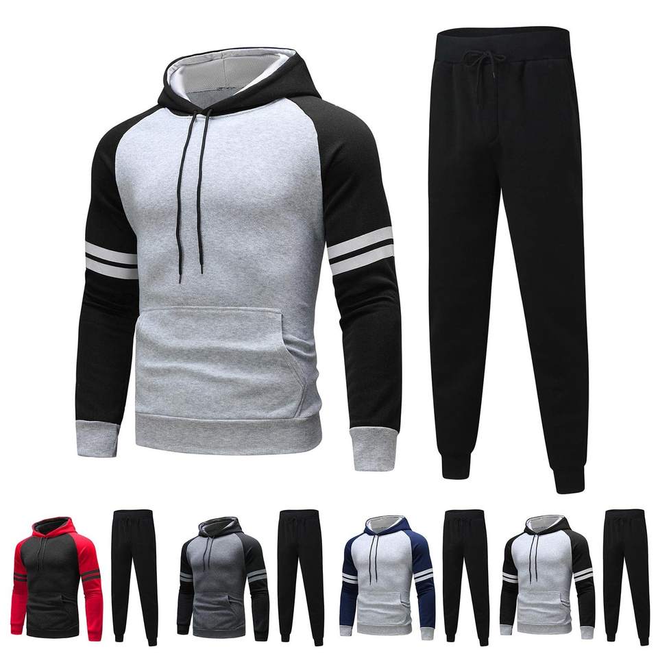 ชุดวอร์มผู้ชายทรงสลิมฟิต ชุดกีฬาแฟชั่นฤดูหนาวใหม่ ชุดแทรคสูทผู้ชายแบบต่อผ้า แบรนด์ส่วนตัวสำหรับขาย