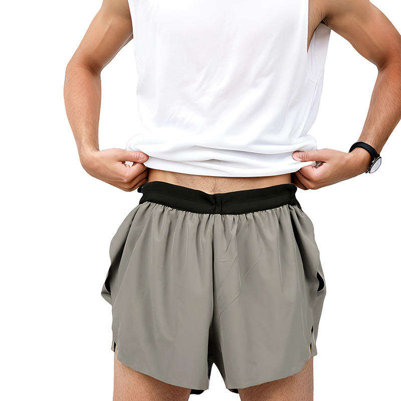 กางเกงขาสั้นวิ่งออกกำลังกายสำหรับผู้ชายน้ำหนักเบาระบายอากาศได้ดีพร้อมเชือกผูกเอวผ้าแคนวาสแบบกำหนดเอง