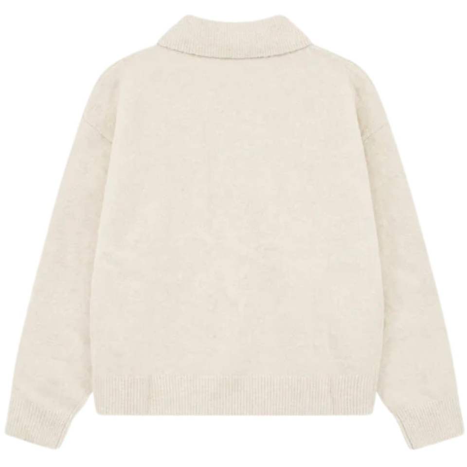 เสื้อโปโลแขนยาวถักสำหรับผู้ชาย สีเบจ เนื้อผ้านุ่ม คอปกติดกระดุม สวมใส่สบาย เหมาะสำหรับฤดูหนาว ผลิตจากผ้าฝ้ายผสม รับผลิตแบบ OEM