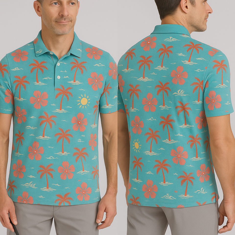 เสื้อกอล์ฟผู้ชายสั่งทำขายส่งปี 2025 คุณภาพสูง ผ้าสแปนเด็กซ์/โพลีเอสเตอร์ ถัก พิมพ์ลาย ระบายอากาศ แขนสั้น แบบซับลิเมชั่น