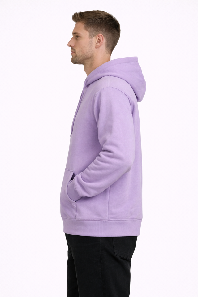 เสื้อฮู้ดผู้ชายสีลาเวนเดอร์ ผ้าฝ้ายฟลีซคลาสสิก สวมใส่สบาย ทรงปกติ อุ่นนุ่ม เหมาะสำหรับฤดูหนาว