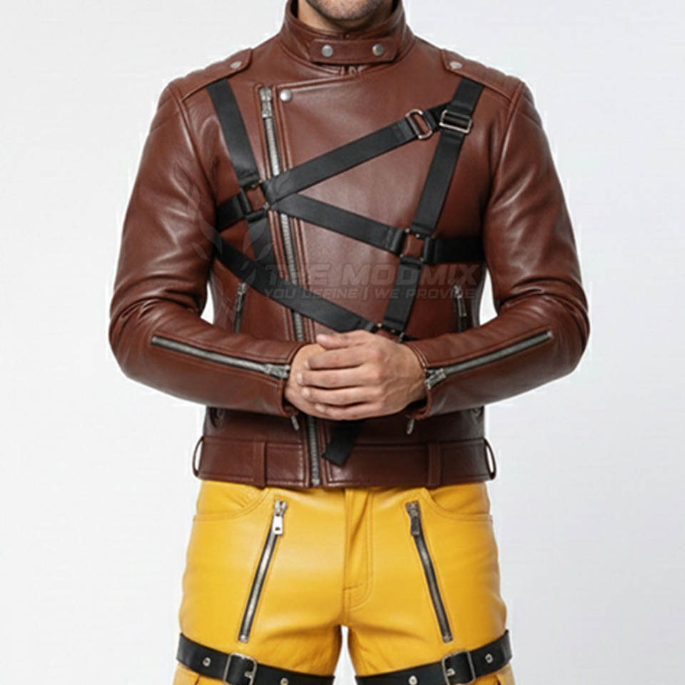 ชุดขับขี่มอเตอร์ไซค์หนังสำหรับผู้ชาย แบบสลิมฟิต พร้อมอุปกรณ์ป้องกัน แจ็คเก็ตและกางเกง ชุดเซ็ต ปรับขนาดได้ด้วยกระดุมแป๊ก