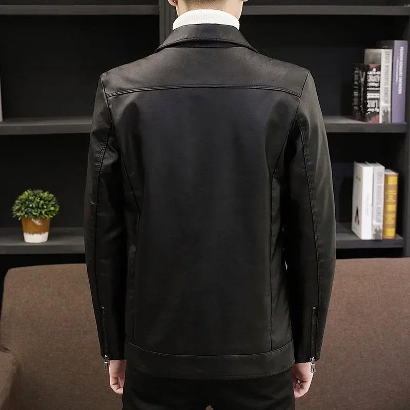 แจ็กเก็ตหนังคอปกตั้งเข้ารูปสำหรับผู้ชายแจ็คเก็ตแบบมีซิปยาวสำหรับขี่มอเตอร์ไซค์แฟชั่น
